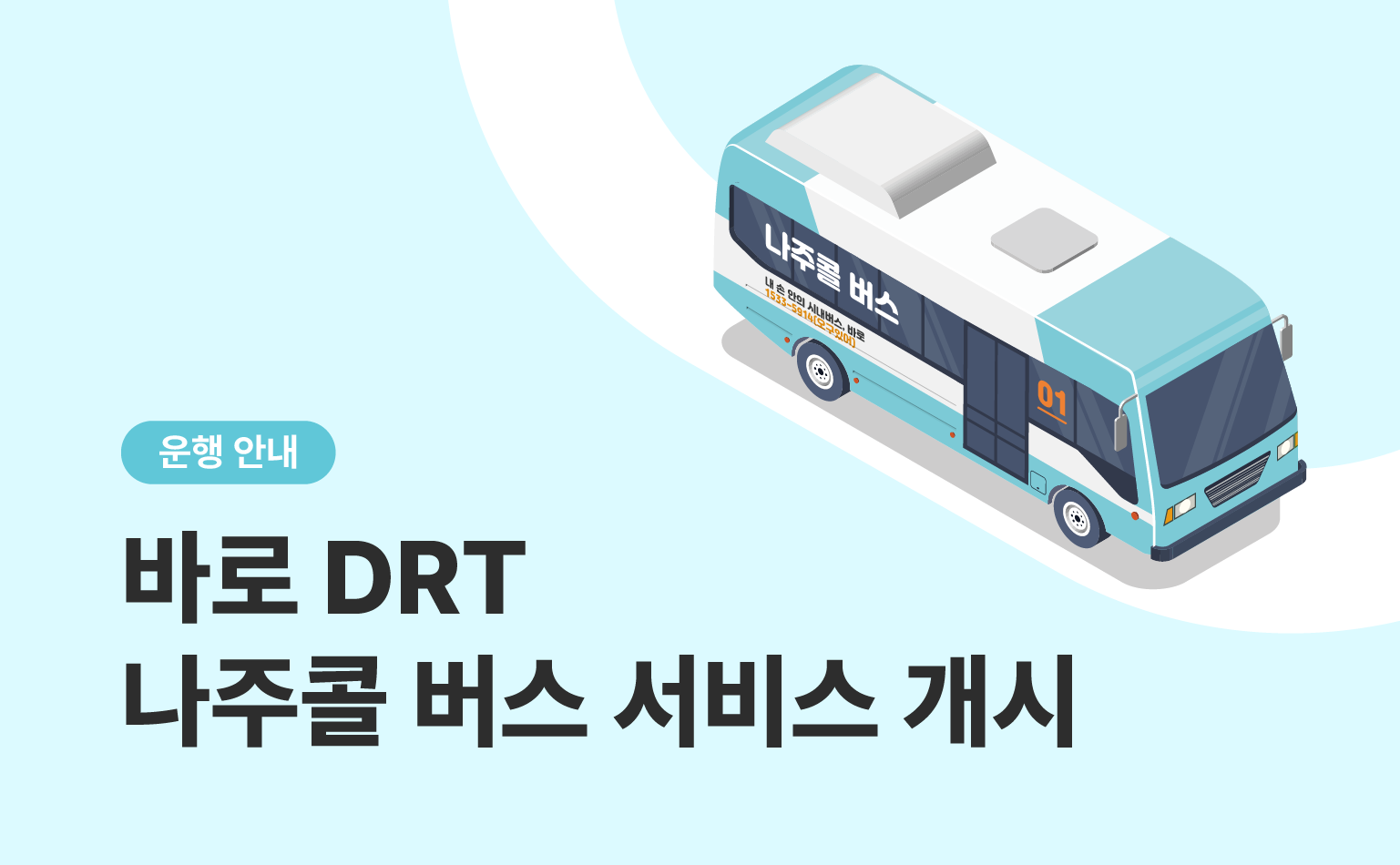 저희 '바로 DRT'가 청주시에 이어 나주 혁신도시에서도 달리게 되었습니다! 👏 9월 1일부터 '나주콜 버스'라는 이름으로 혁신도시인 빛가람동을 대상으로 운영되며, 빛가람동 일대 75개 정류장에서 이용 가능합니다.