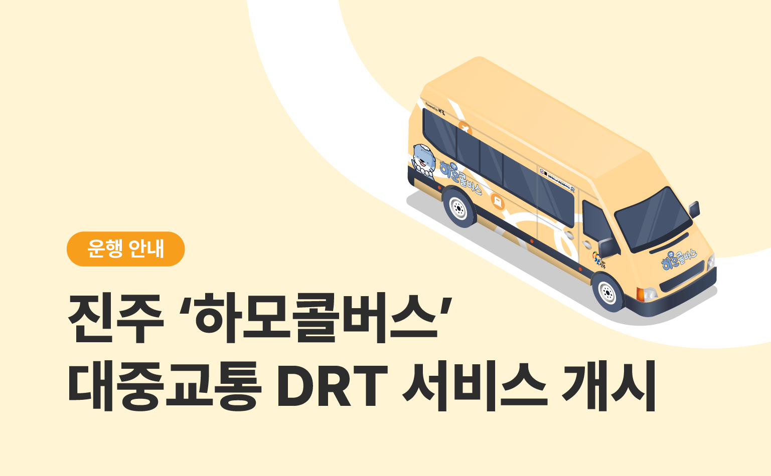 바로 DRT가 10월 1일부터 '하모콜버스'라는 이름으로 경상남도 진주시에서도 달리게 되었다는 소식 전해드립니다! 👏 운영 기간 동안 진주시 동부 5개면 일대와 진주시 전역 관광지에서 이용해 보실 수 있어요. *세부 운행 지역은 '티머니GO' 앱 참고